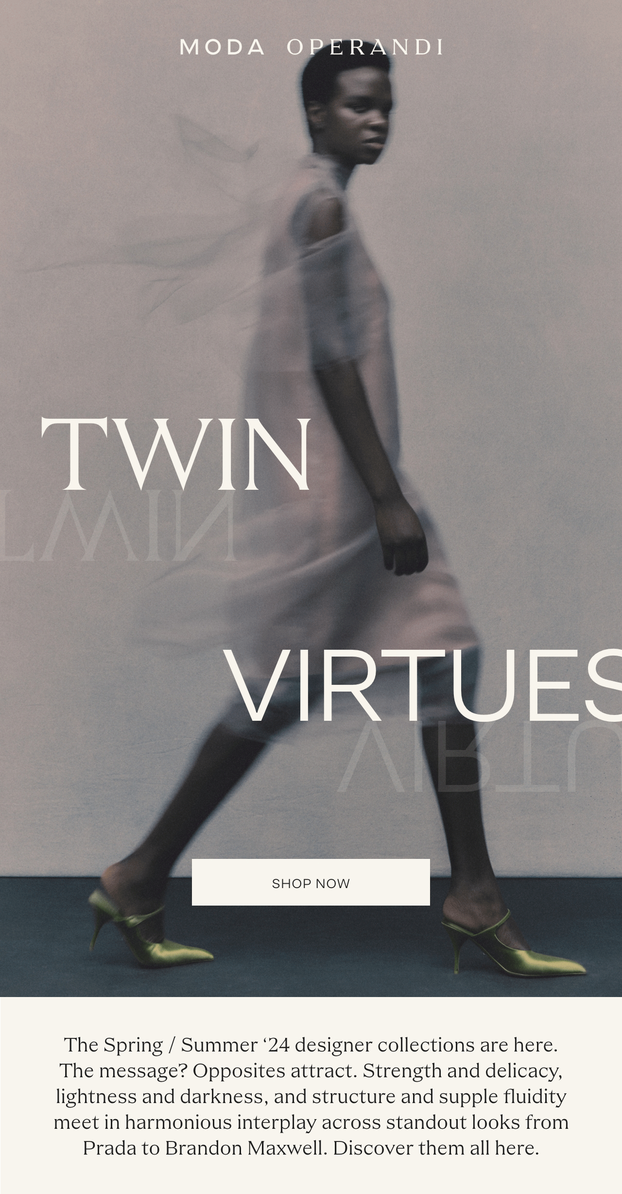 Embracing the interplay of opposites, I focused the concept of this campaign around the theme of duality: fluidity and structure, light and shadow, delicacy and strength. Set amongst contrasting backdrops, two models enhance the theme while soft motion blur contributes to the prevailing optimism and forward motion that is woven throughout the collections.